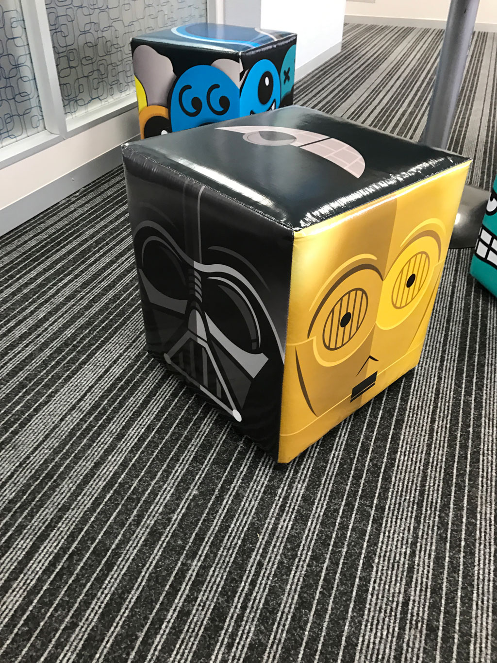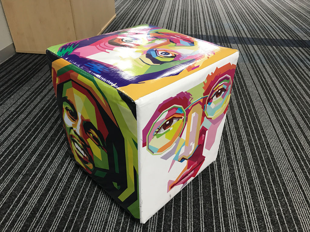 Branded ottomans and canvas prints to make a space your own. Give us a call to see what we can do for you. |